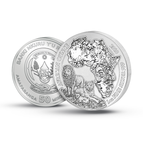 Die Münze von 2010 zeigt ein Löwen-Pärchen mit Jungem.