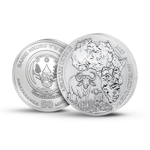 Ein Büffelweibchen und sein Kalb schauen auf dieser Münze den Betrachter an.
